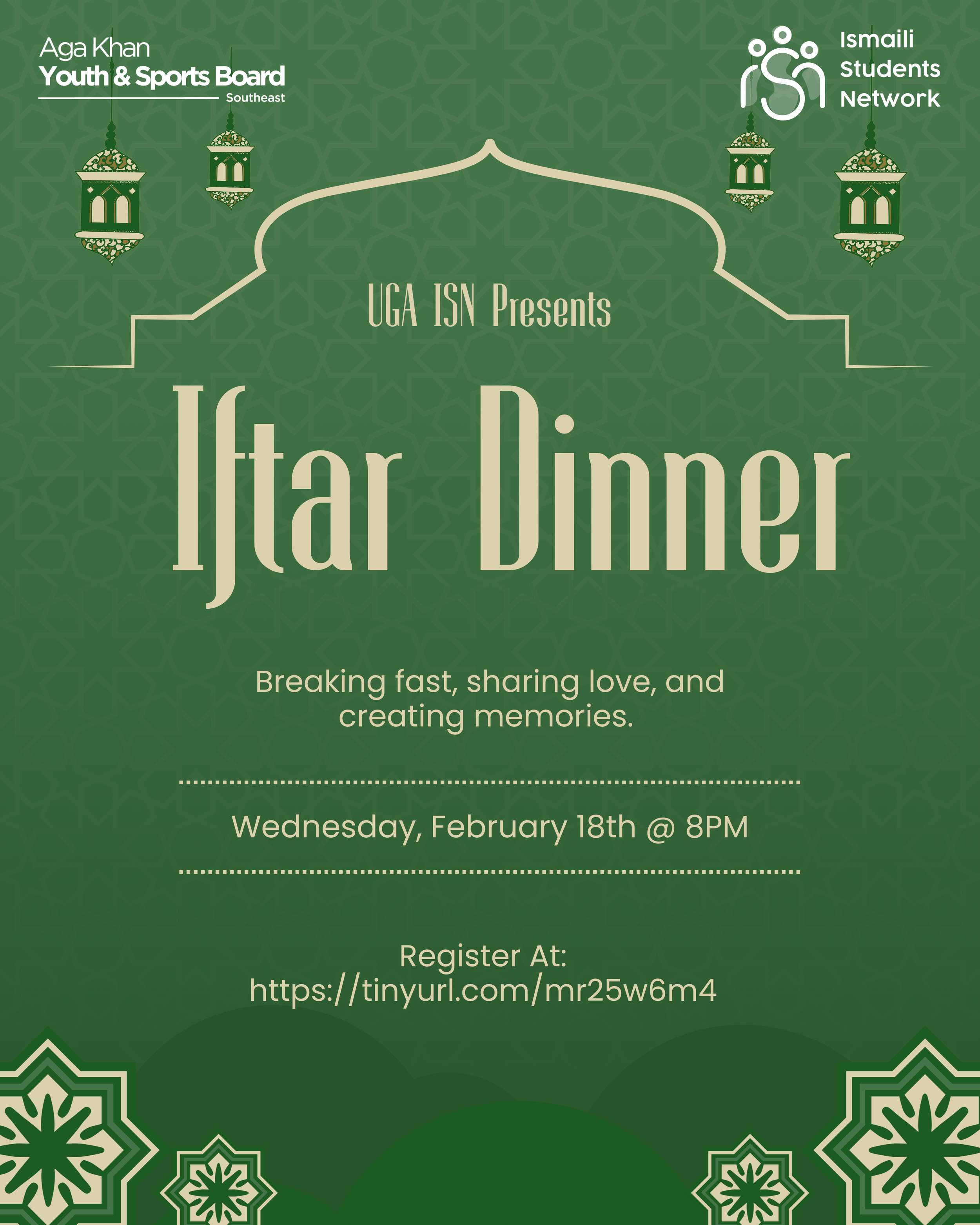 Ramadan nights are better together. UGA ISN is hosting an Iftar Dinner — join us for a meaningful evening of good food, reflection, and community as we break fast together.
